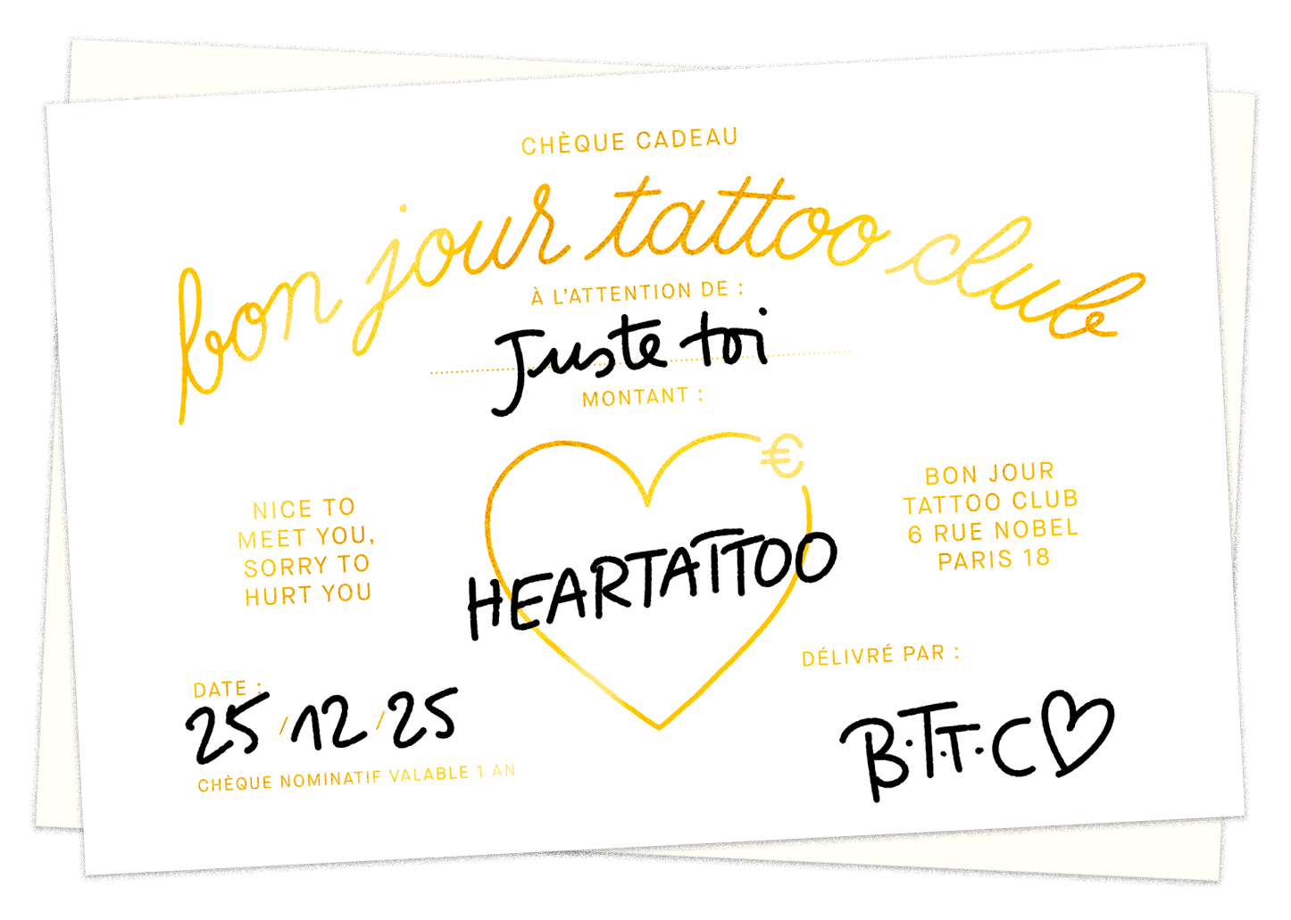 Chèque Cadeau 250€ (Heartattoo) @Jeanandre @bonjourtattooclub